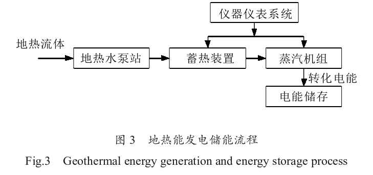 蒸汽機組是利用地熱流體中的熱能來驅動渦輪機發電的關鍵設備。高溫蒸汽通過管道輸送到蒸汽機組,推動渦輪葉片旋轉,從而帶動發電機產生電力。蒸汽機組的效率和性能直接影響地熱能發電系統的整體效益。為了提高發電效率, 現代蒸汽機組通常采用高效的熱交換技術和先進的材料,以減少熱能損失和設備磨損。電池儲能裝置在地熱能發電中的應用主要是為了平滑電力輸出,提升電網穩定性。地熱能發電具有一定的間歇性和波動性,電池儲能系統可以在電力輸出不足時迅速補充電力,同時在電力過剩時存儲電能,以備后用。常見的電池儲能技術包括鋰離子電池、鈉硫電池和全釩液流電池等。這些電池系統不僅具有快速響應能力,還能在一定程度上延長地熱能發電設備的使用壽命。地熱能發電儲能流程如圖3所示。