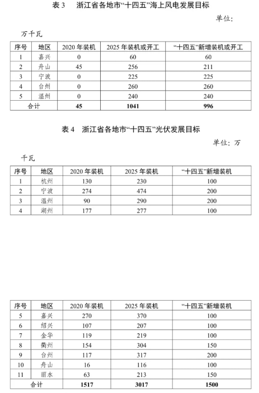 "十四五"海上風(fēng)電和光伏發(fā)展目標進行明確,詳見表 3和表 4。