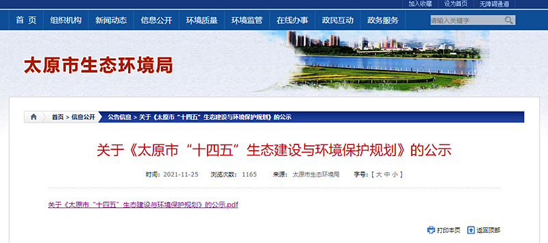 文章來源:地大熱能 發布作者:太原市生態環境局 發表時間:2021-12-22 08:45:06瀏覽次數:3447