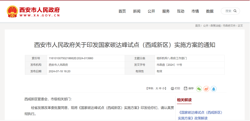 7月19日,西安市人民政府面向西咸新區(qū)管委會,市級相關(guān)部門印發(fā)《國家碳達(dá)峰試點(西咸新區(qū))實施方案》,聚焦綠色低碳發(fā)展的能源和產(chǎn)業(yè)轉(zhuǎn)型瓶頸制約,加快提升能源清潔化利用效率、基礎(chǔ)設(shè)施綠色低碳化水平和減污降碳協(xié)同能力,全面推動產(chǎn)業(yè)高質(zhì)量發(fā)展和資源循環(huán)利用。