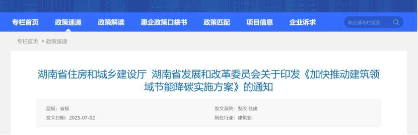 湖南省住房和城鄉建設廳 湖南省發展和改革委員會關于印發《加快推動建筑領域節能降碳實施方案》的通知